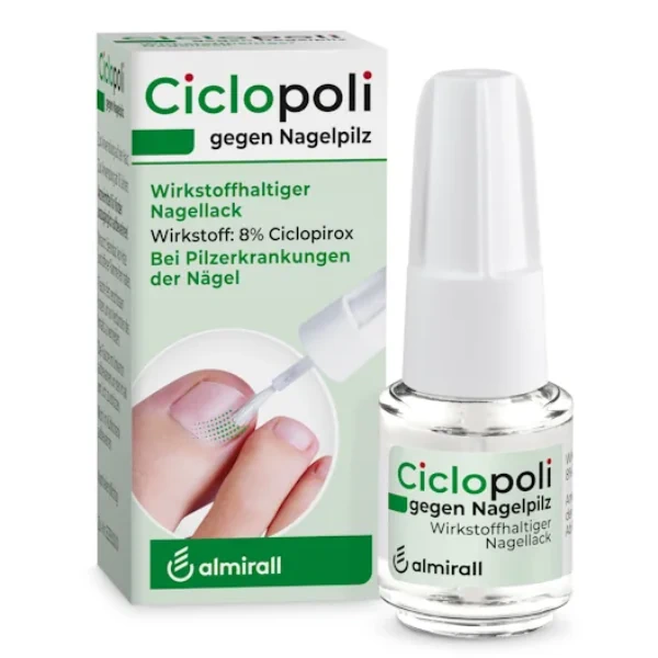 Ciclopoli vernis à ongles contre la mycose des ongles le vernis à ongles contre la mycose des ongles. La préparation est un médicament antifongique à large action (antifongique à large spectre). Il est utilisé pour traiter les maladies fongiques des ongles (onychomycose) causées par des champignons filamenteux et/ou d’autres champignons qui peuvent être traités par le ciclopirox. L’ingrédient actif ciclopirox empêche les champignons de se développer et les tue. Cela améliorera l’apparence de vos ongles.